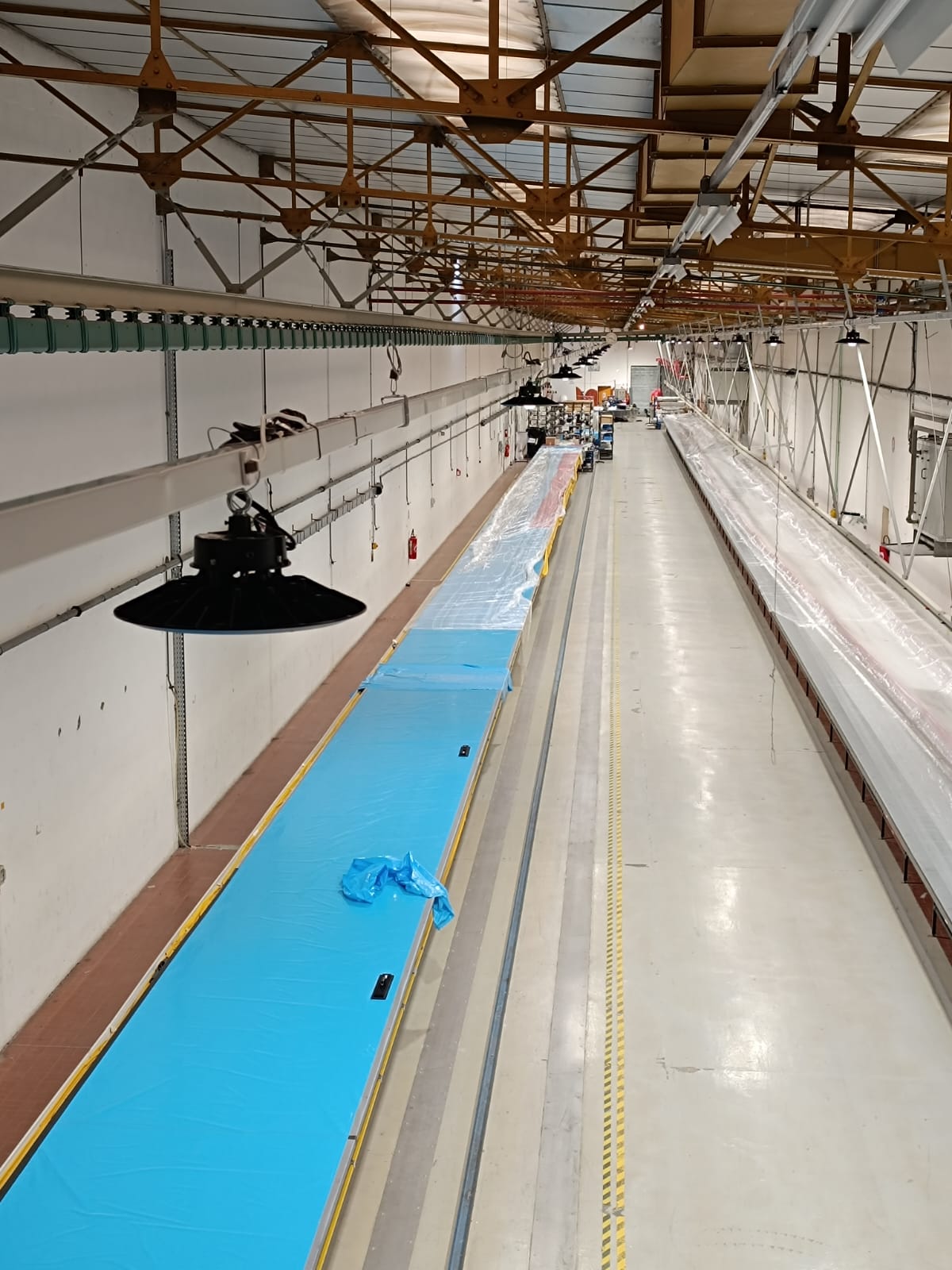 Rénovation globale site industriel technique: 160 projecteurs déposés et remplacés par des luminaires de type Highbay. Reprise des alimentations.